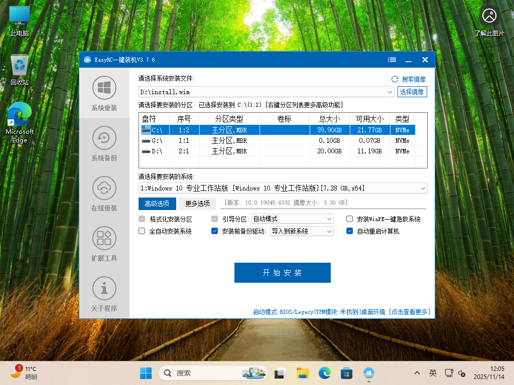 本教程适用于在电脑还可正常开机的场景下更换系统使用,若你的电脑已经无法开机,则无法使用本教程重装系统,请自行网络搜索如何使用 U 盘重...